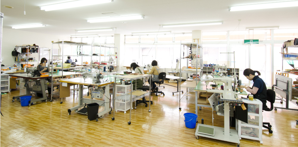 KAZUの工場では、外から作業風景が一望できます。製作工程・品質管理へのゆるぎない自信の現れであり、より高い品質の革製品を生み出し続ける決意でもあります。
